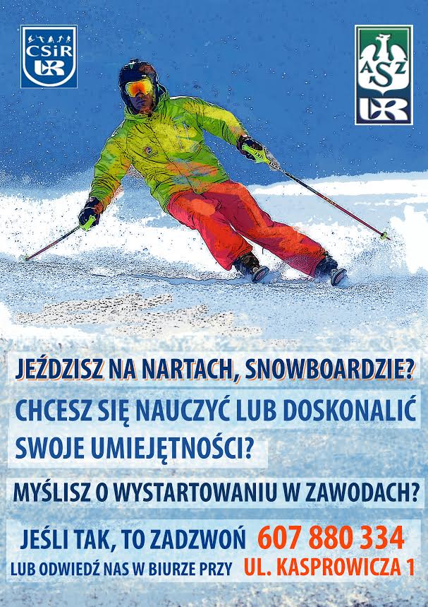 Sekcja Narciarska Klubu Uczelnianego Akademickiego Związku Sportowego UR serdecznie zaprasza osoby chętne do zapisów!!! W ramach sekcji będą organizowane wyjazdy treningowe oraz rekreacyjne. Więcej informacji pod nr telefonu: 607 880 334 lub mailowo: wojtekprzygoda@wp.pl.