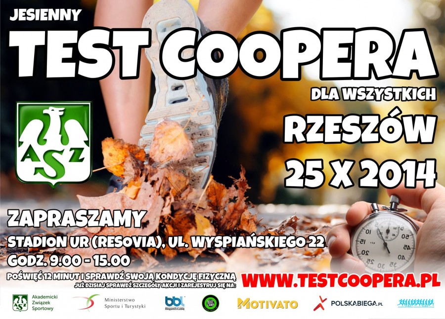 „Test Coopera dla Wszystkich” organizowany jest na zlecenie Ministerstwa Sportu i Turystyki w ramach ogólnopolskiej kampanii promowania sprawności fizycznej przez Akademicki Związek Sportowy Środowisko Warszawa we współpracy z jednostkami AZS w danych miastach. Impreza jest częścią akcji Polska Biega. W Rzeszowie organizatorami jest Klub Uczelniany Akademickiego Związku Sportowego Uniwersytetu Rzeszowskiego oraz Samorząd Studentów Wydziału Wychowania Fizycznego Uniwersytetu Rzeszowskiego.