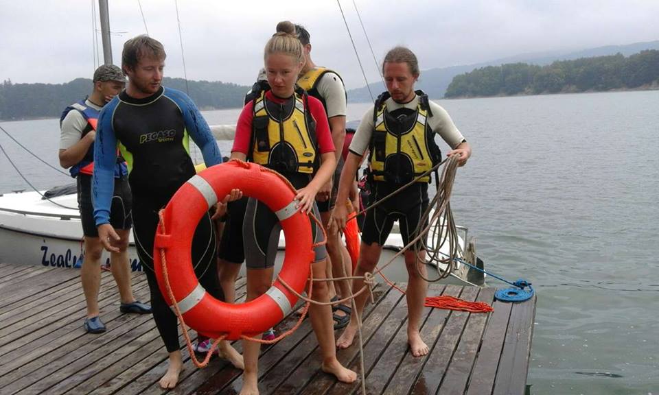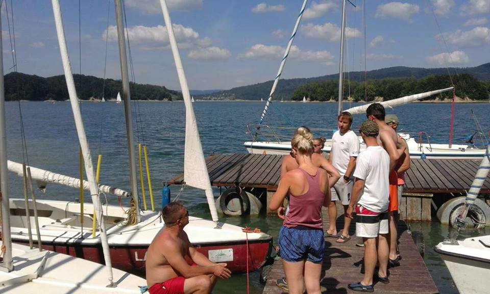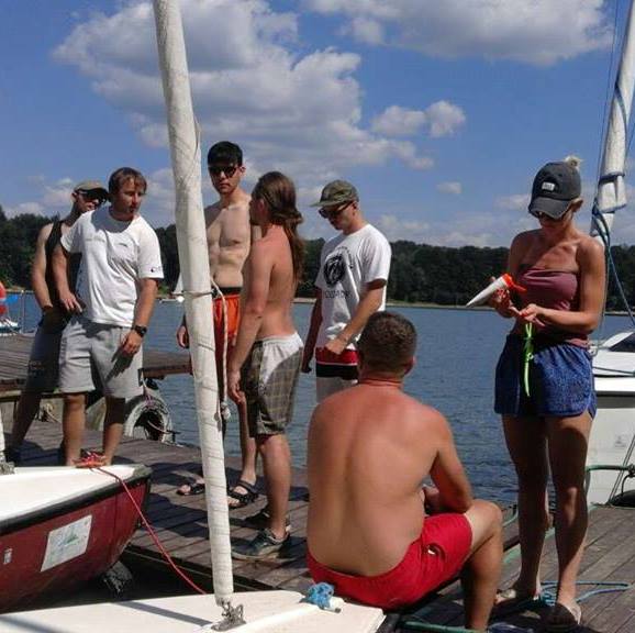 Na terenie Bazy Żeglarskiej AZS trwa kurs na stopień żeglarza jachtowego. Słońce nie odpuszcza, temperatury również.. a wiedzę przyjmować trzeba!;) Wieczorami pod osłoną drzew przerabiamy teorię..